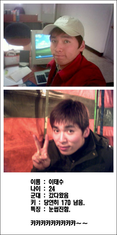 참고로... 얘 말투 웃겨..-_-;; 말투가..강원도랑 충청도 사투리가 섞여가꼬..-,.-;;;; 좀 웃기단다...그거빼곤 괜찮은 놈이지...-_-;;;;