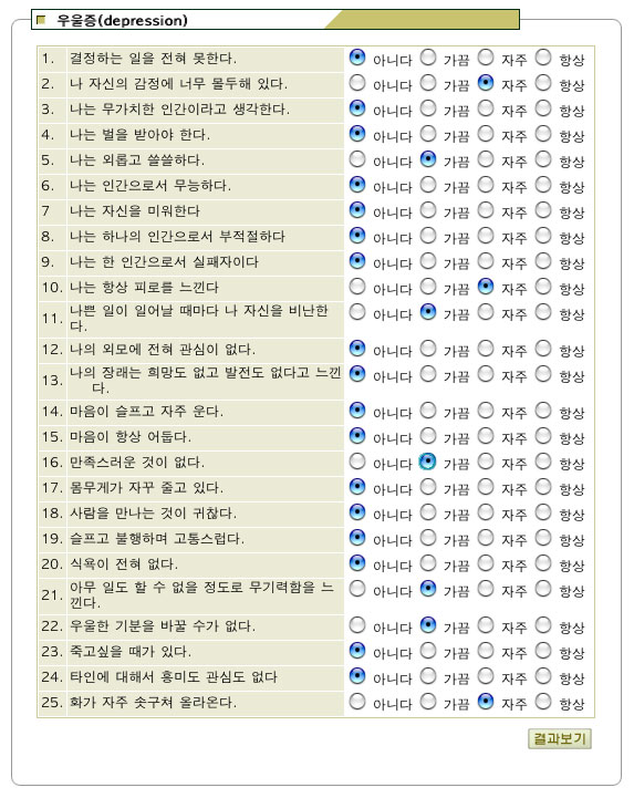 우울증 자가진단(쑤니언니)