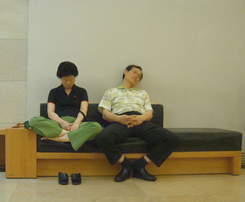 진짜 자세 독특하네요 한분은 머리 젖히고 한분은 머리 숙이고