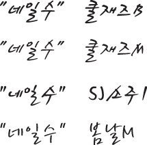 세종체는 없고 비슷한 쿨째즈와 봄날 소주1체로...