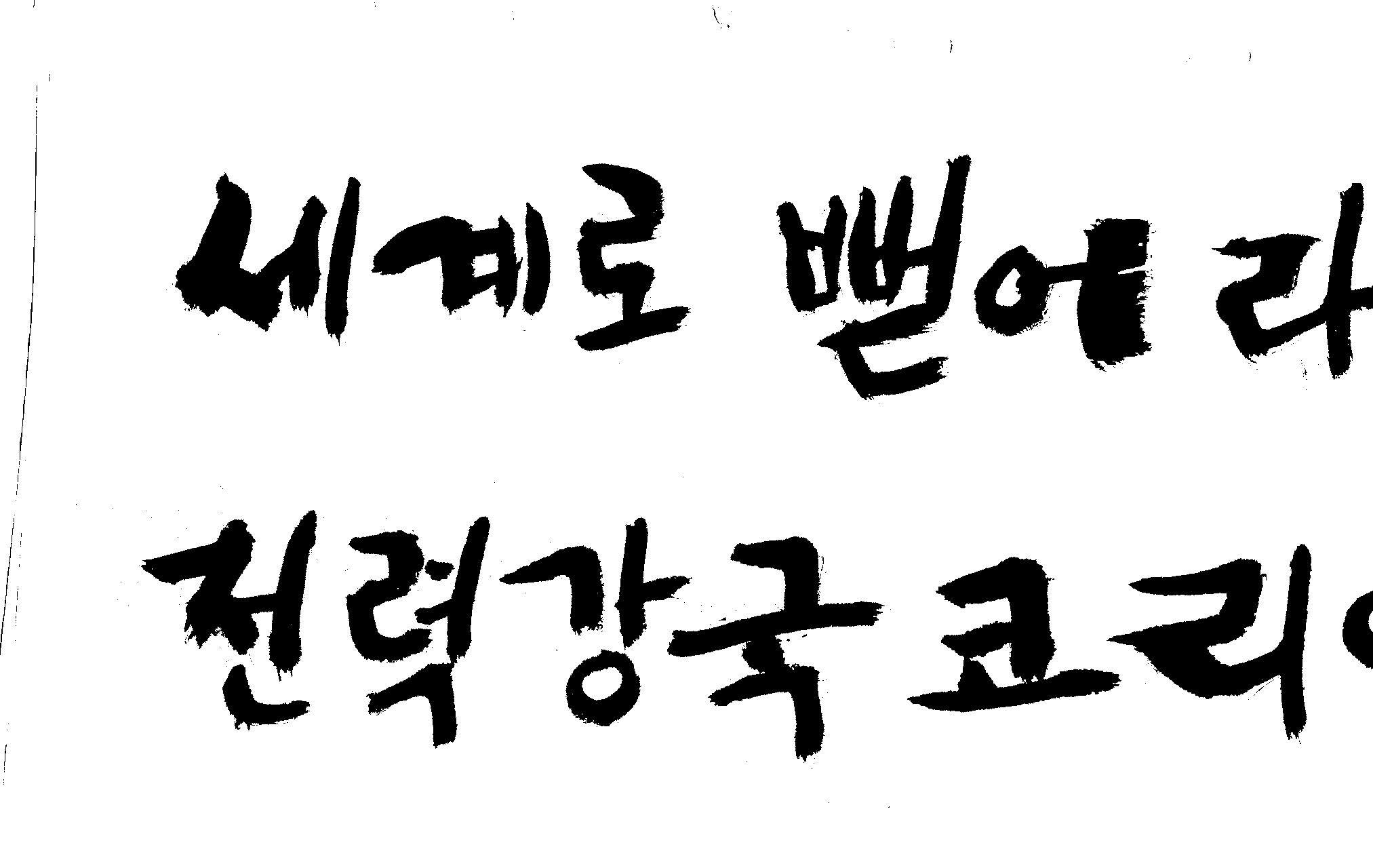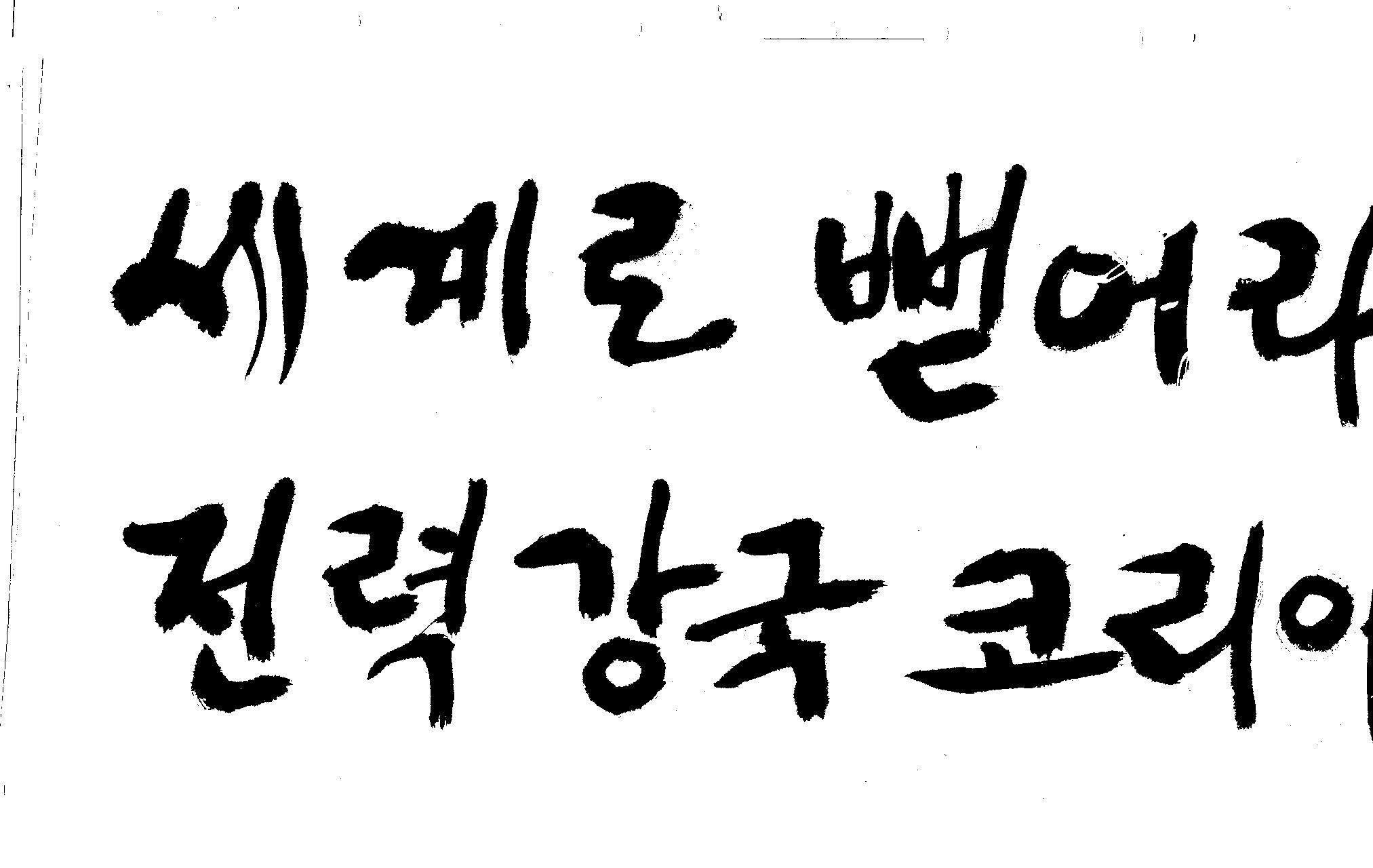 캘리 좀 부탁드려요!~ 김철호 일반 1 12857 2008.12.24 12:09 > > > > > > > > > 전력회사 신문광고를 하는데요 캘리로 멋지게 하고픈데 > > > 캘리프로그램으로 아무리 써도 느낌이 안나옵니다 ㅜ.ㅜ > > > 이런걸 부탁한다는 자체가 너무나도 염치없지만 부탁드립니다. > > > > > > 세계로 뻗어라! 전력강국 코리아 > > > > > 보기는 쉬워도 하기는 어려운게 > > 세상 모든 일 일겁니다. > > 그중에 캘리그라피가 그런 것일 겁니다... > > 스캔중에 글꼴이 잘린것은 서로다른글꼴서 편집하시길... > > 글수가 많아서 어쩔 수없네요... > > >