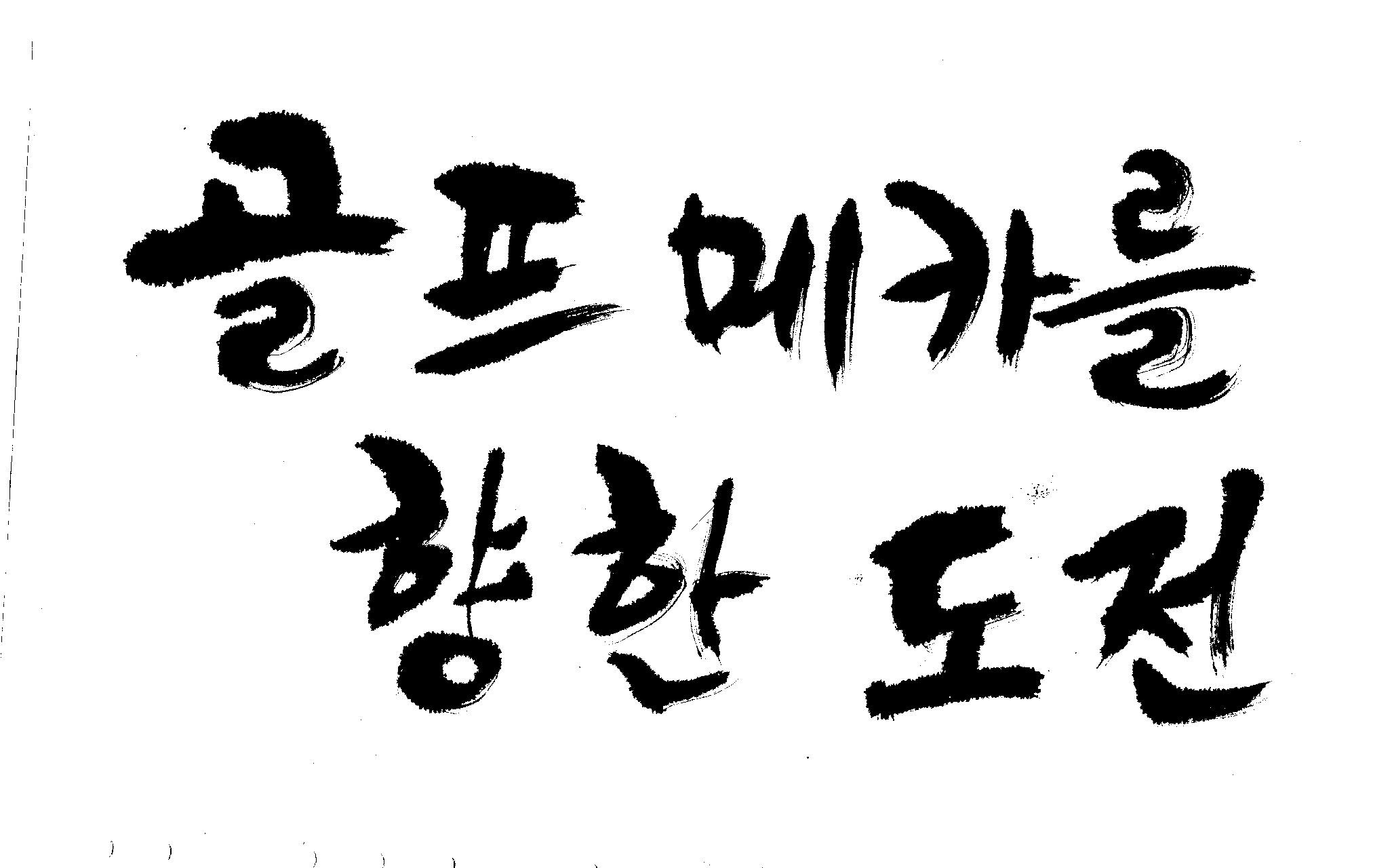 우경의 행복한 캘리세상-골프메카 김철호 일반 1 8640 2009.07.18 10:27 > > > > > 리듬감을 최대한 살리고 ㅡ 스포츠의 운동감과 밝음 > > 기교섞인 획을 배제--일반적인 느낌 > > 굵기변화를 통하여 도전 낱말을 강조 > > 스타일은 비슷하지만 ...한 사람이 썼으니까 ㅎㅎㅎ > > 서로 다른 글꼴을 올린 것은... 비교하여 보시고... > > 편집자에게 선택권을 주는 것입니다 > > >